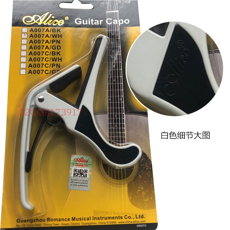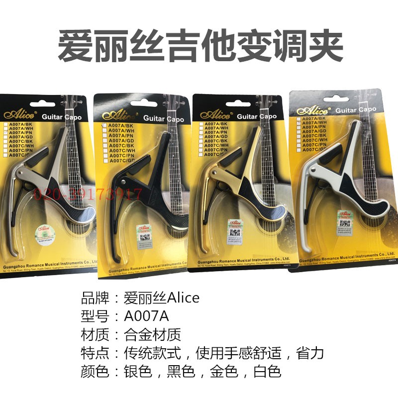 Alice Guitar Deferral A007A Black and Silver Alloy Metal Transfer Clamp CAPO Alice