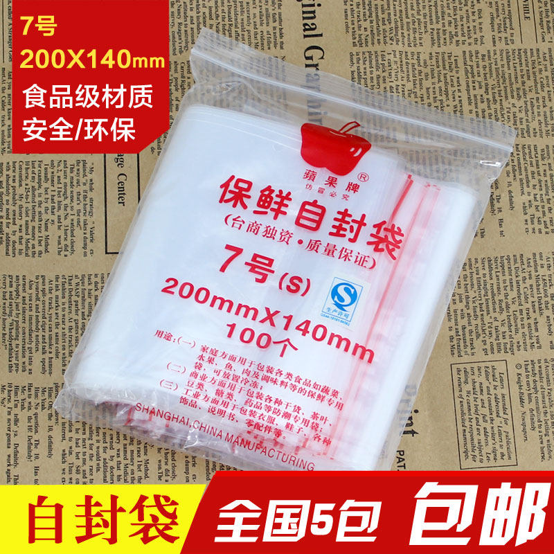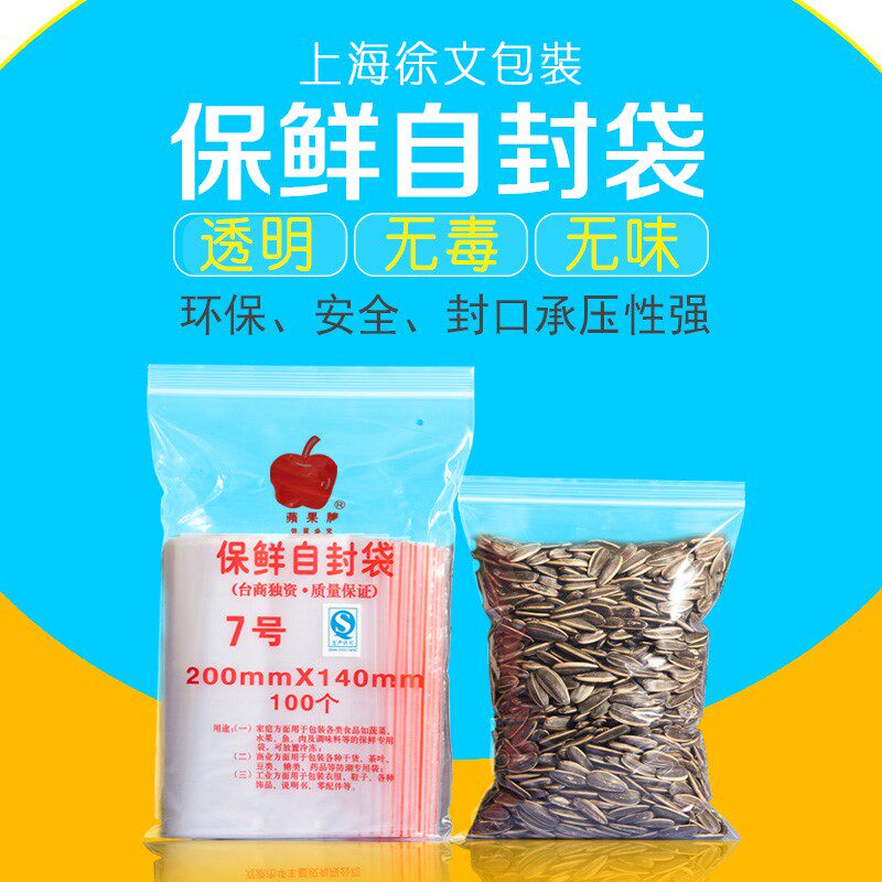 Self-sealing bag No. 7 Apple brand 20*14cm transparent thickening sealed bag mask sub-packaging sealing plastic bag food bag