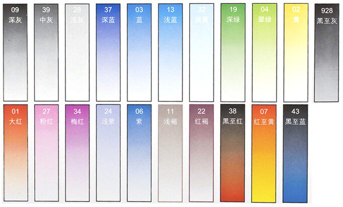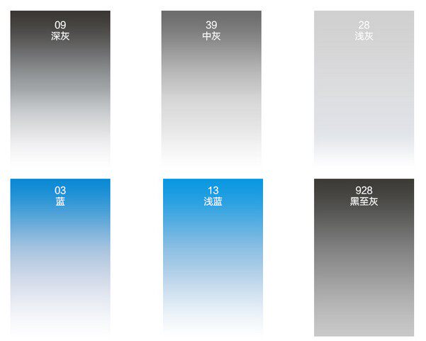 39#中灰至白09#深灰至白928#黑至灰13#浅蓝至白38#黑至红28#浅灰至白43#黑至蓝03#蓝至白37#深蓝至白 it's a