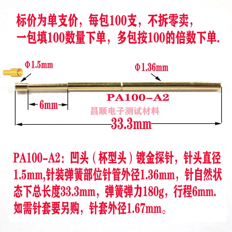 Original Warboom PA100-A2 (Cup Type Head) Full Gold Plated Test Needle Probe Thimble Spring Pin