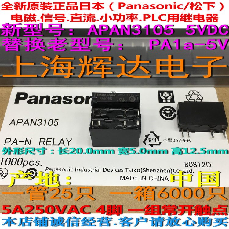 Panasonic relay APAN3124 24V PA1a-24V-APA3312 APAN3105 5V 5A PLC