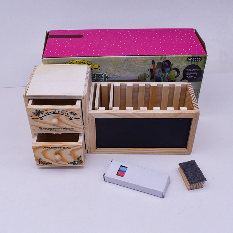 Wooden utility slot pen brush creative multifunction with message blackboard fitting wooden children's toy desktop