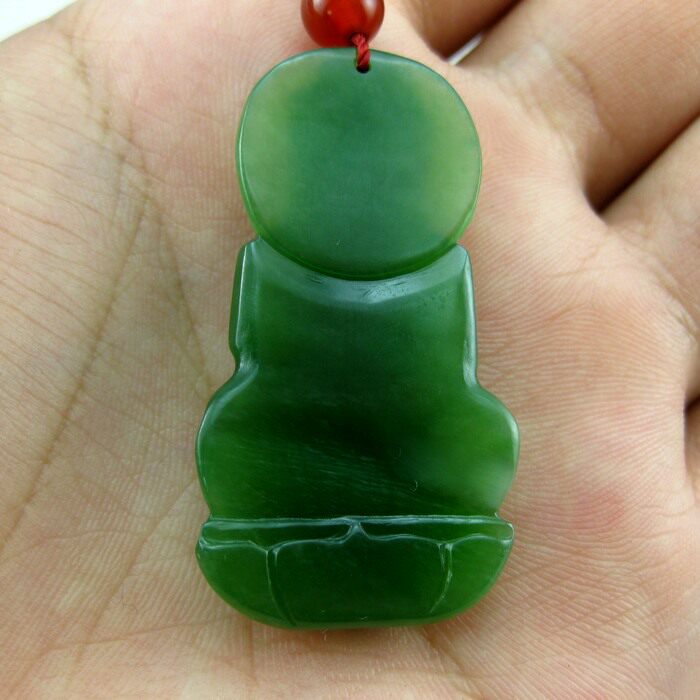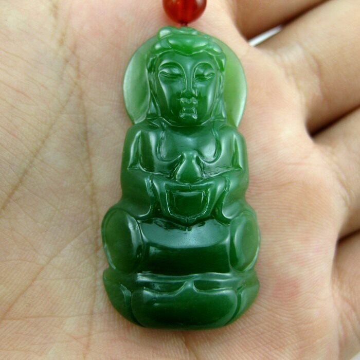 (Lingde jade instrumental) Xinjiang and Tian Yubei jade spinach green Guanyin hanging pendant men's belt certificate