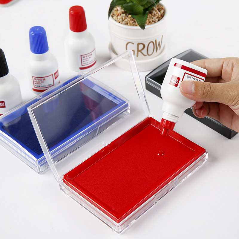 Deli quick-drying ink pad 9864 extra large black mud box Red seal Bank financial office oillable transparent box Copper seal Rubber seal Hand print foot print Hand print Blue sponge print box