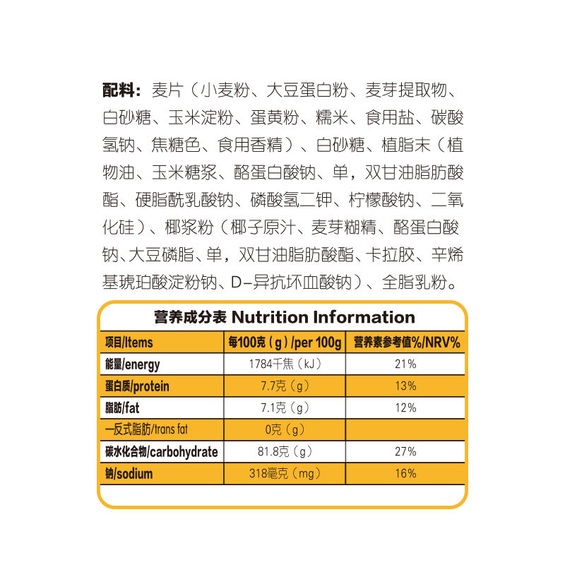 椰奶营养麦片550g×1袋 椰奶营养麦片550g×2袋