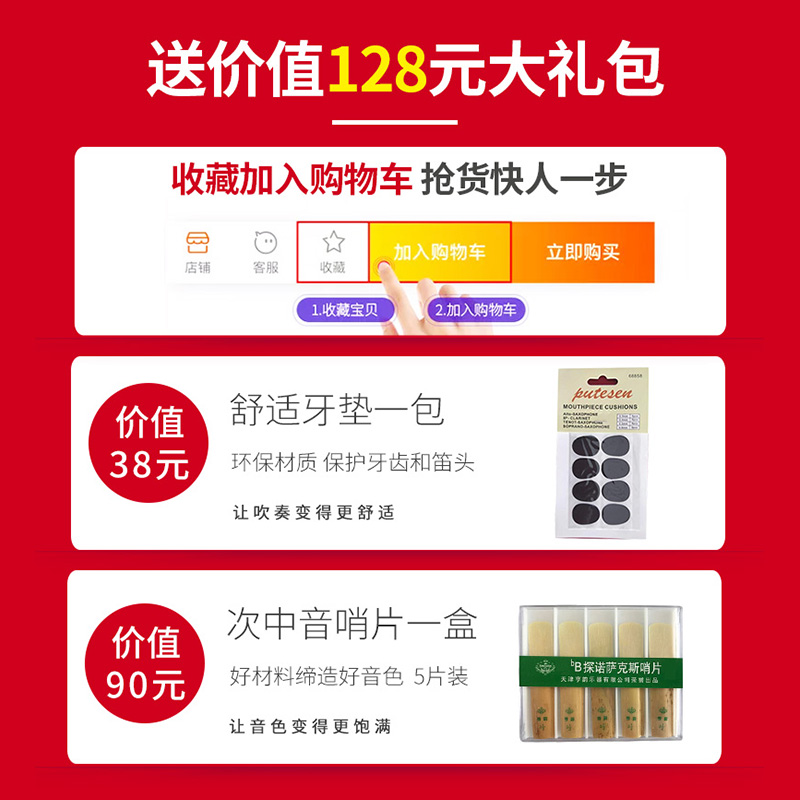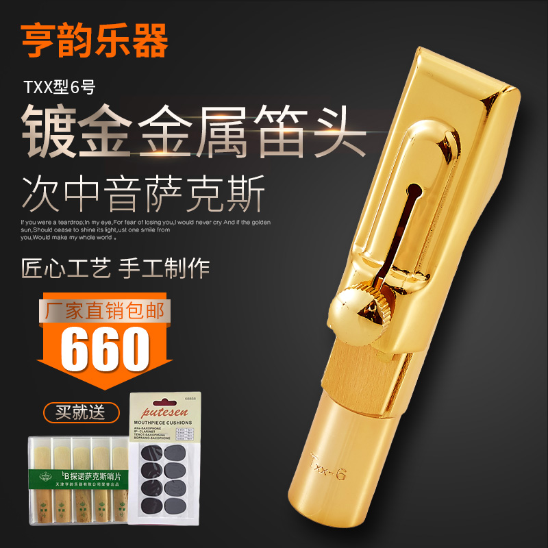 Hengyun instrument B- flat tenor sax metal flute head gold-plated three-piece set Factory Direct