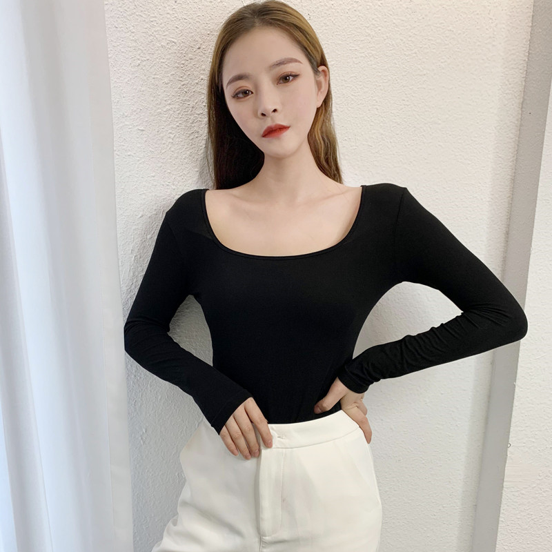 Large size MoDel thin undercoat lady blouse low collar large neckline undershirt T-shirt autummy underwear
