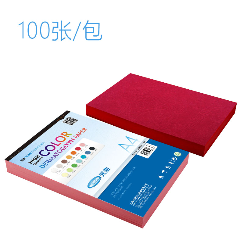 Yuanhao 100 pieces of A4 color leather paper 230G cover paper blue cardboard with a pattern binding document contract bid concave and convex pattern can be printed white red cloth seal texture paper