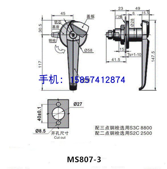 Power control cabinet handle MS 807 - 3 industrial switch cabinet handle lock cabinet iron cabinet door lock