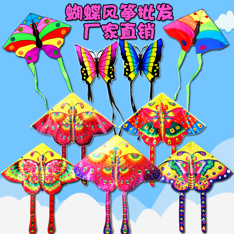 Weifang Hongyun triangle bright cloth colorful children's rainbow couple butterfly long tail multi-tail cartoon new butterfly kite