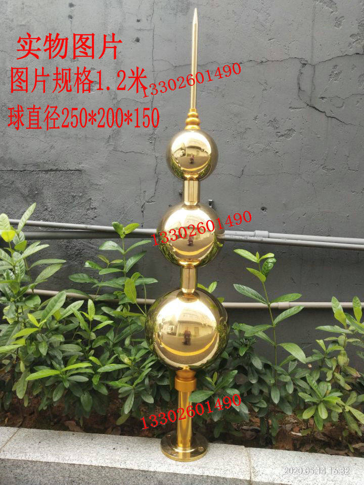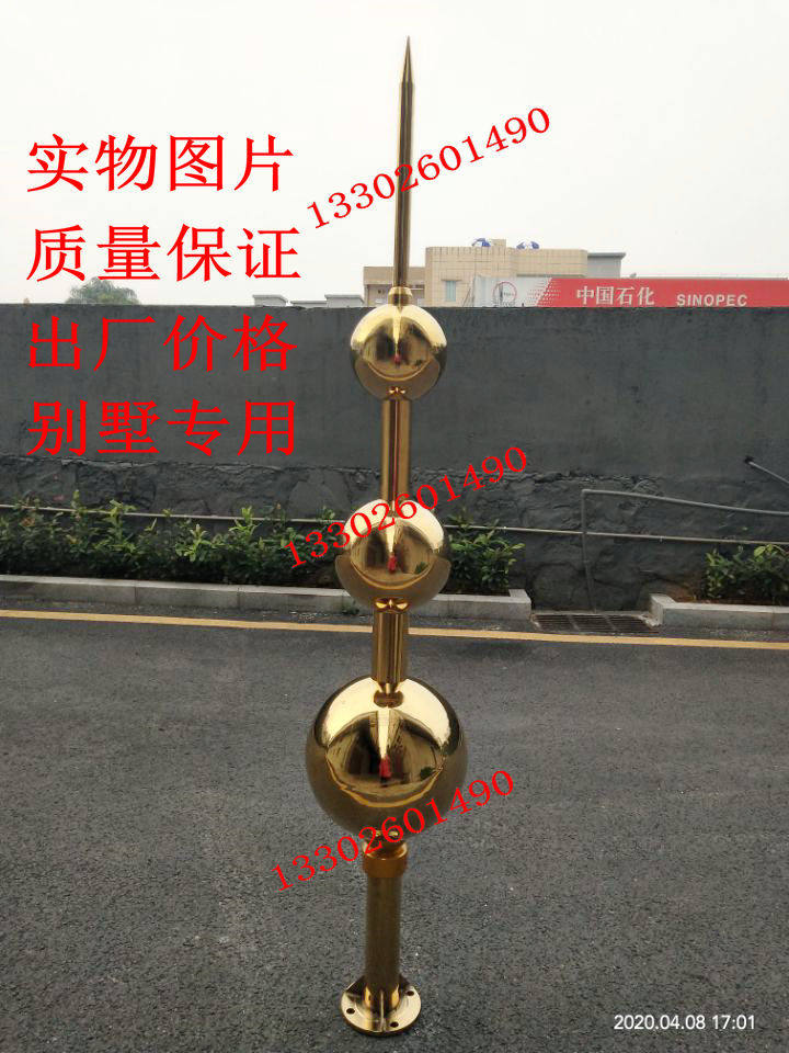 Three-ball titanium-plated gold-type lightning rod roof outdoor villa home decoration special lightning rod