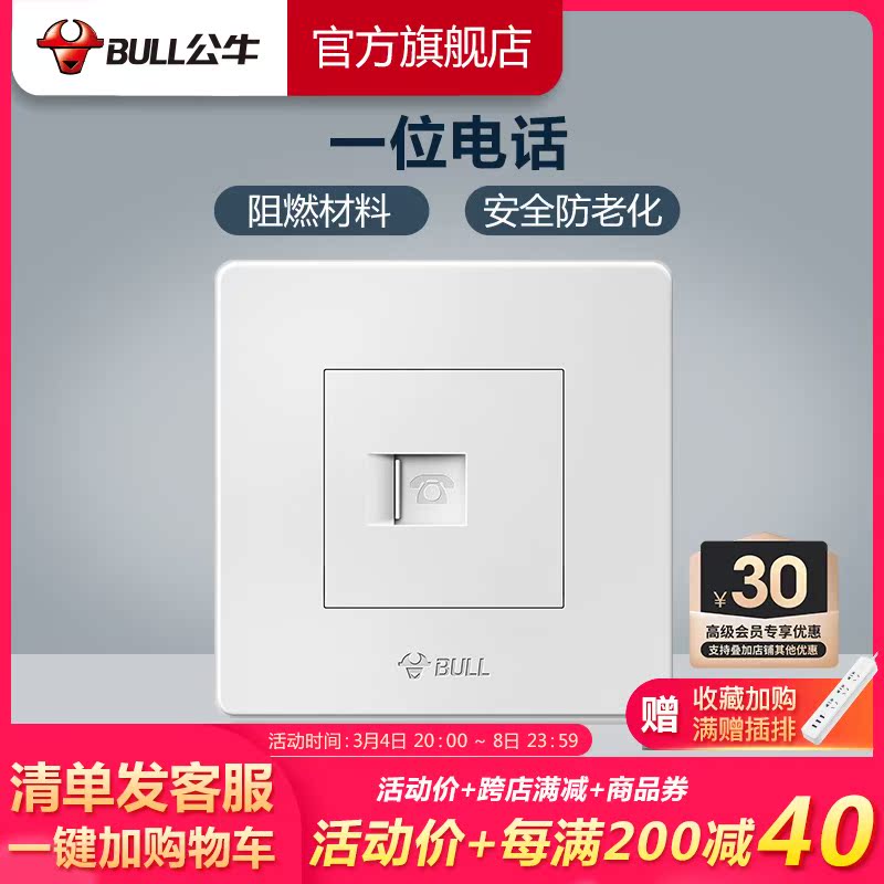 Bull socket flagship phone socket panel type 86 one-digit phone wall switch telephone cord socket G07 white