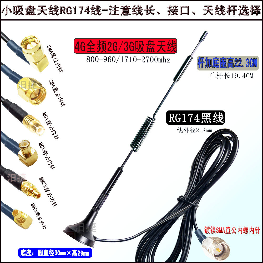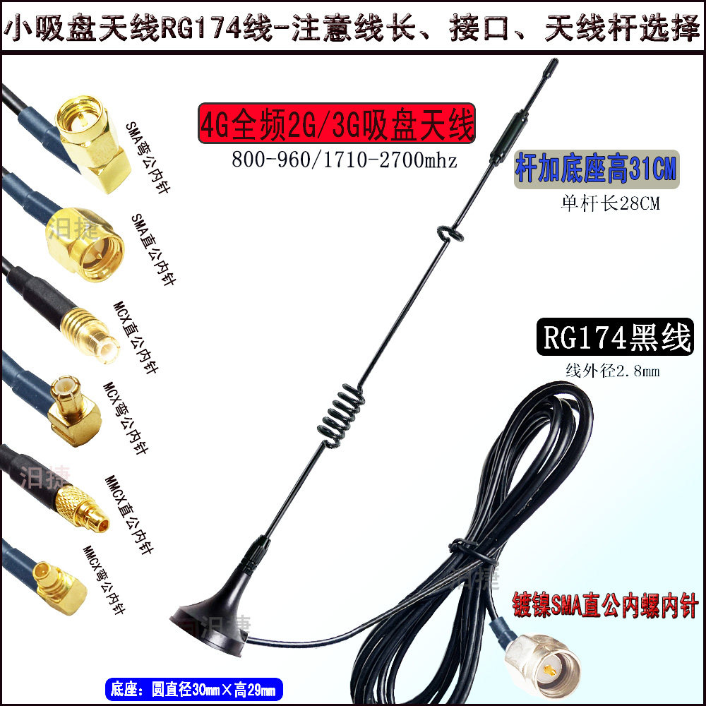800-2500MHz small 4G full frequency 900 1800MHz antenna 433 magnetic suction 30 small suction cup RG174 2G 3G