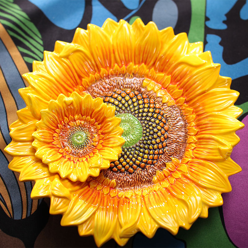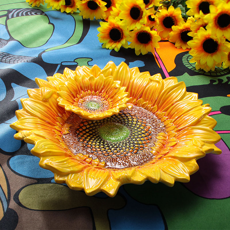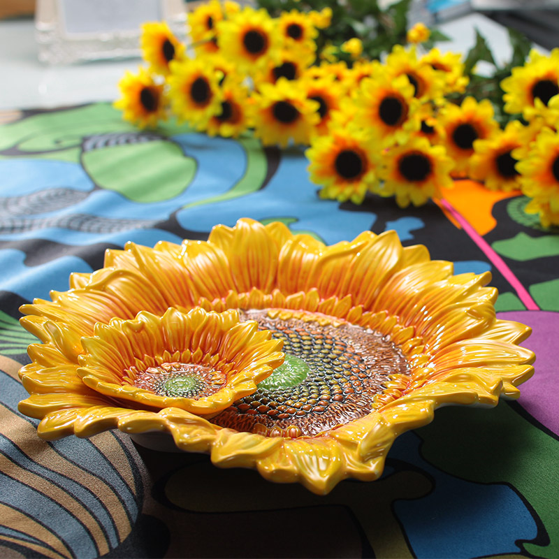 Ceramic fruit bowl Candy bowl Fruit plate Fruit plate Bread plate Decorative breakfast plate Two-grid dipping plate Sunflower