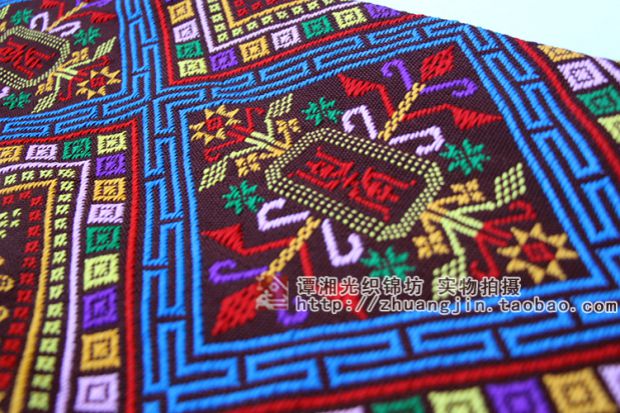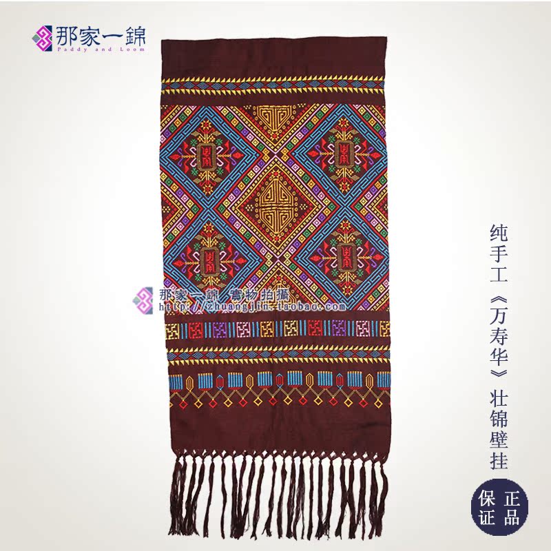 Coffee bottom"Wanshou Flower" Zhuang brocade wall hanging