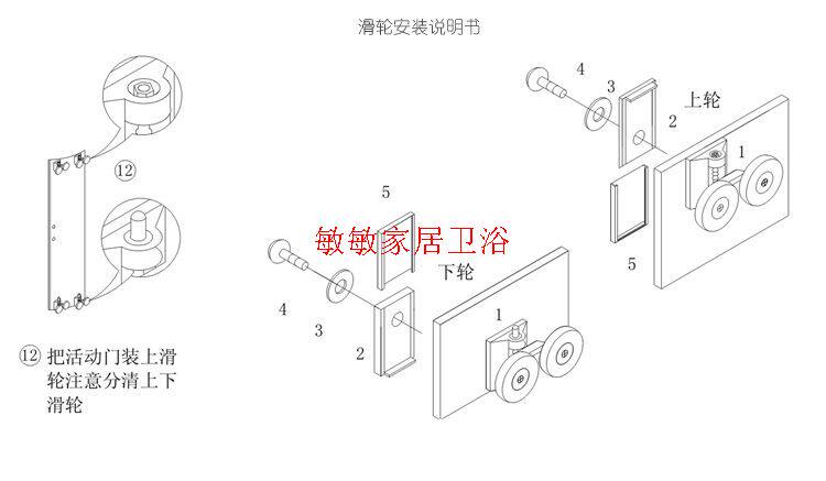 Arc shower room pulley Spring swing double wheel up and down wheel Bathroom glass sliding door hanging wheel Sliding door roller wheel