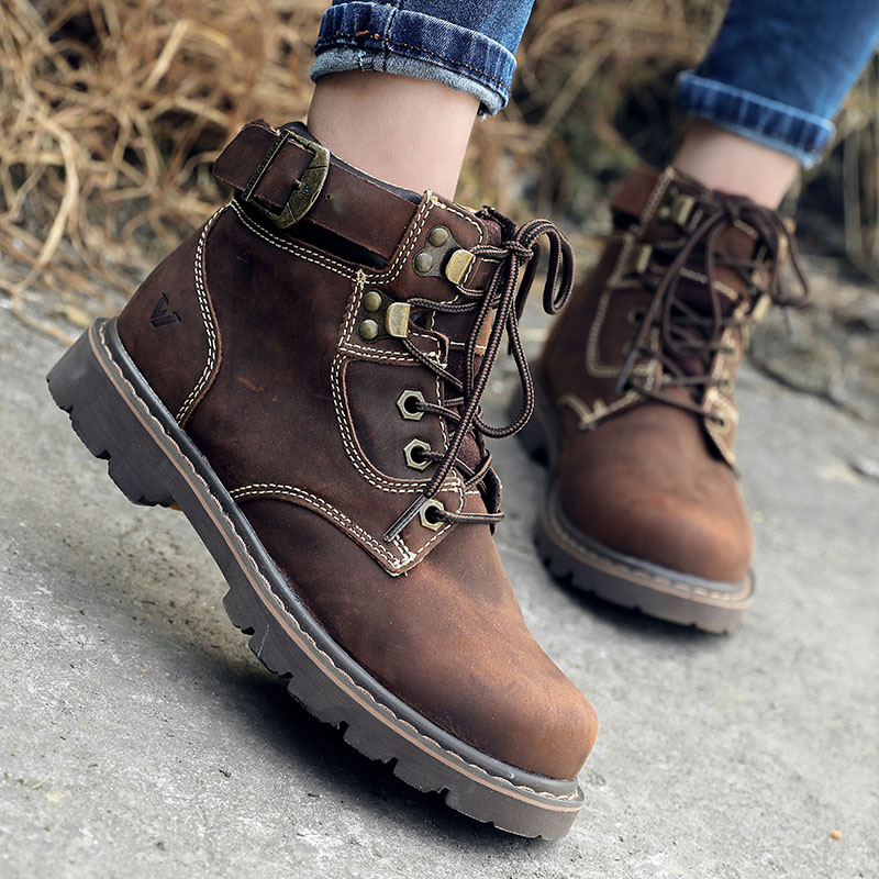 Leather Martin boots leather short boots can not kick rhubarb boots casual women's boots trend tooling boots men's waterproof motorcycle boots