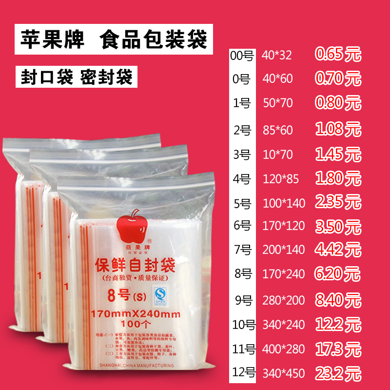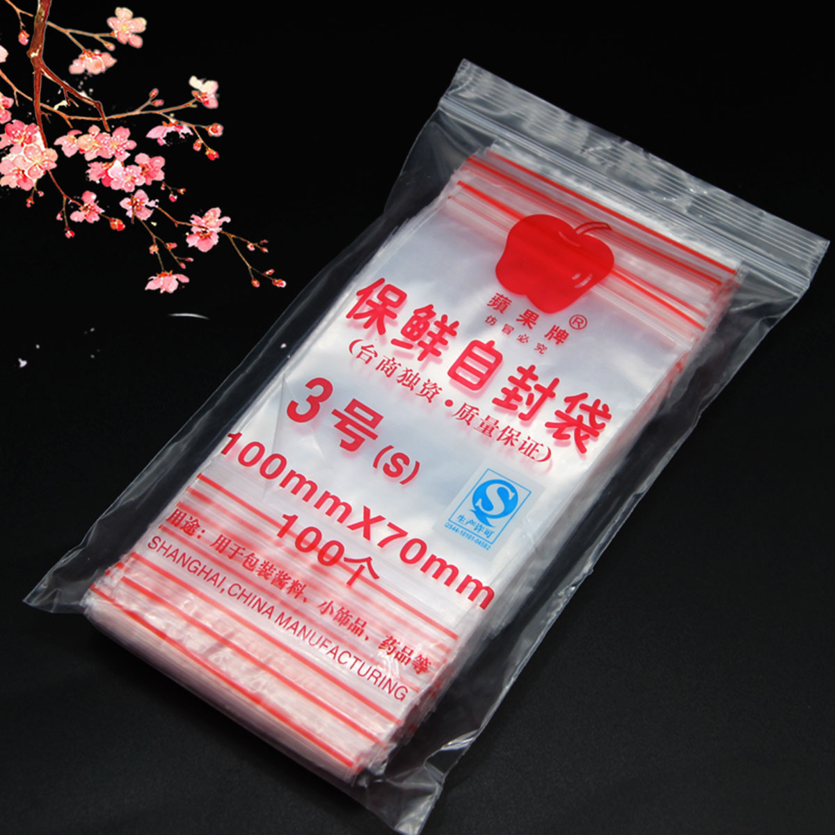 Apple No. 3 PE ziplock bag sealing bag sub-packaging bag accessories bag 7*10cm food bag clip chain bag wholesale