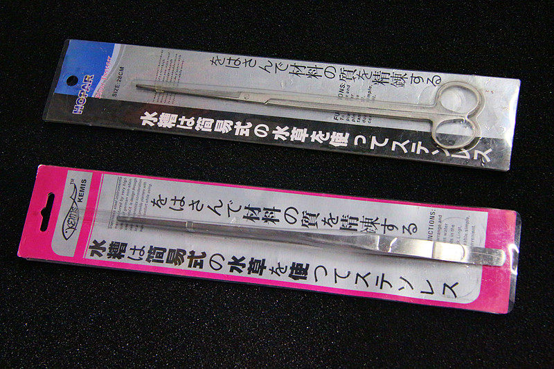 Curved scissors, straight scissors, straight tweezers, curved tweezers