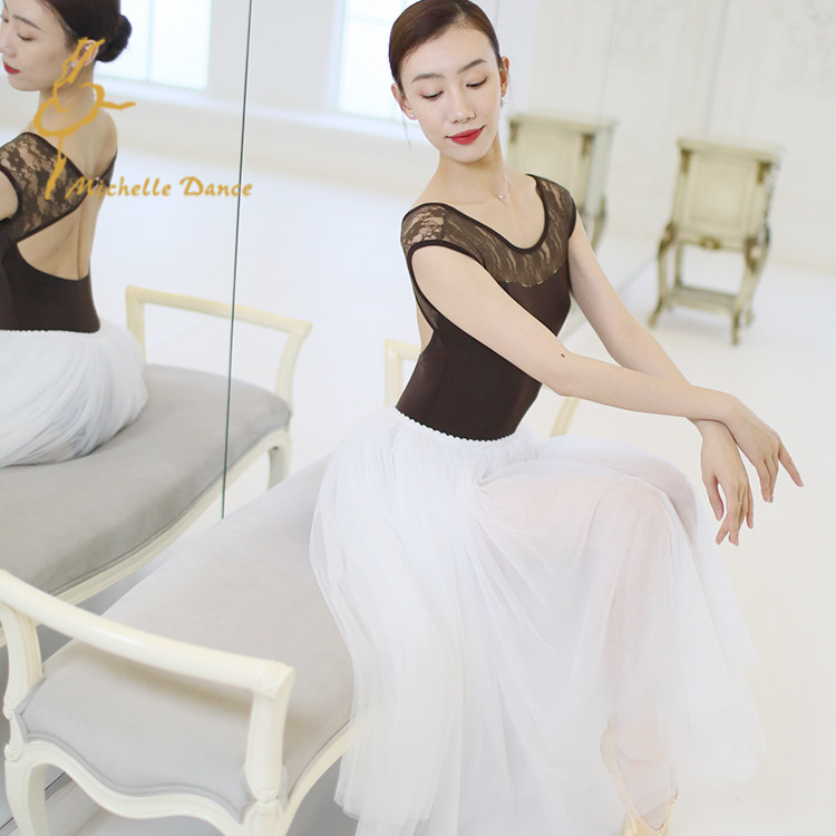 MichelleDance 2020 Adult ballet Romantic Flower Mesh Splicing Half Sleeve with POLKA