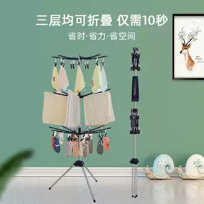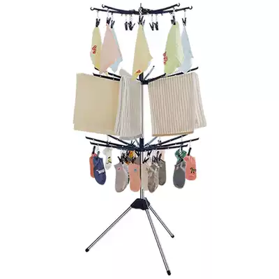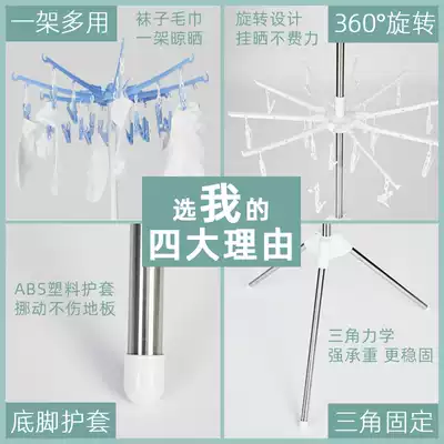 Baby drying rack floor folding balcony stainless steel drying hanger children's towel rack rotatable baby diaper rack