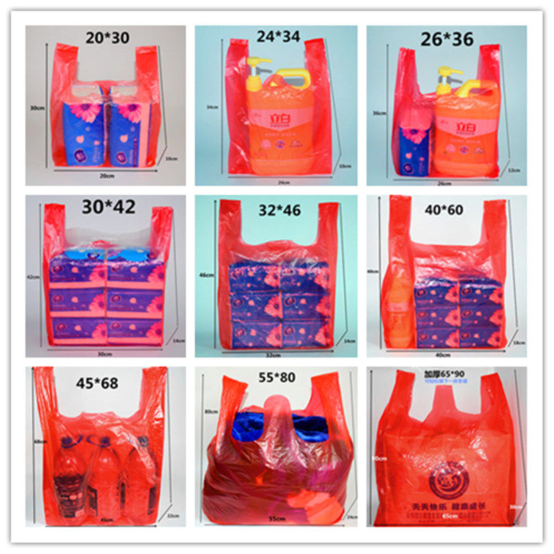 Thickened Red Plastic Bag Wholesale Vest Shopping Bag Customised Hand Garbage Bags Takeaway Packed Pe New Material Bags