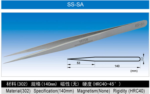 SS-SA VETUS Wittes pointy fine tweezers Swiss technology anti-magnetic anti-acid anti-fake