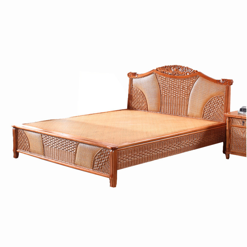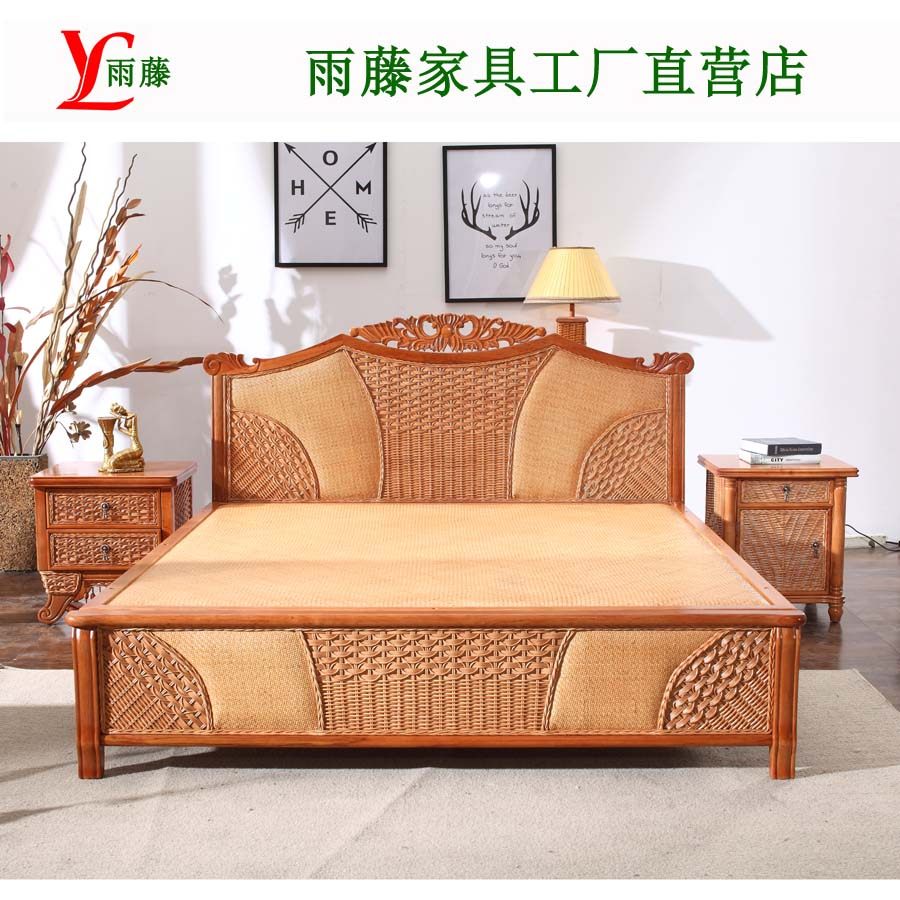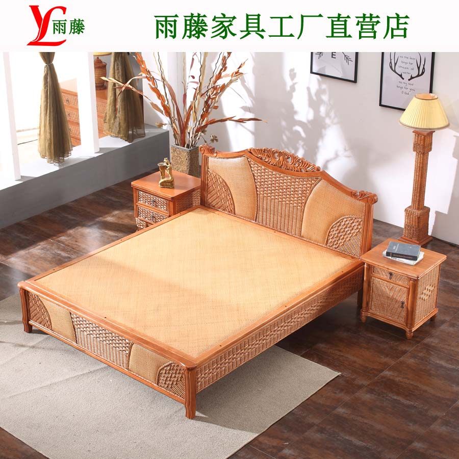 Southeast Asia natural rattan bed Rattan wood 1 5 meters single double bed 1 meter eight Teng woven Chinese style large 1 8 meters rattan bed