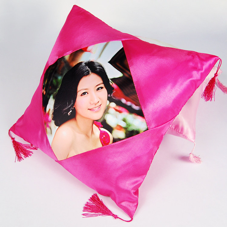 Thermal transfer New satin red personality Custom creative photo gift advertising square with ear holding pillow head-Taobao
