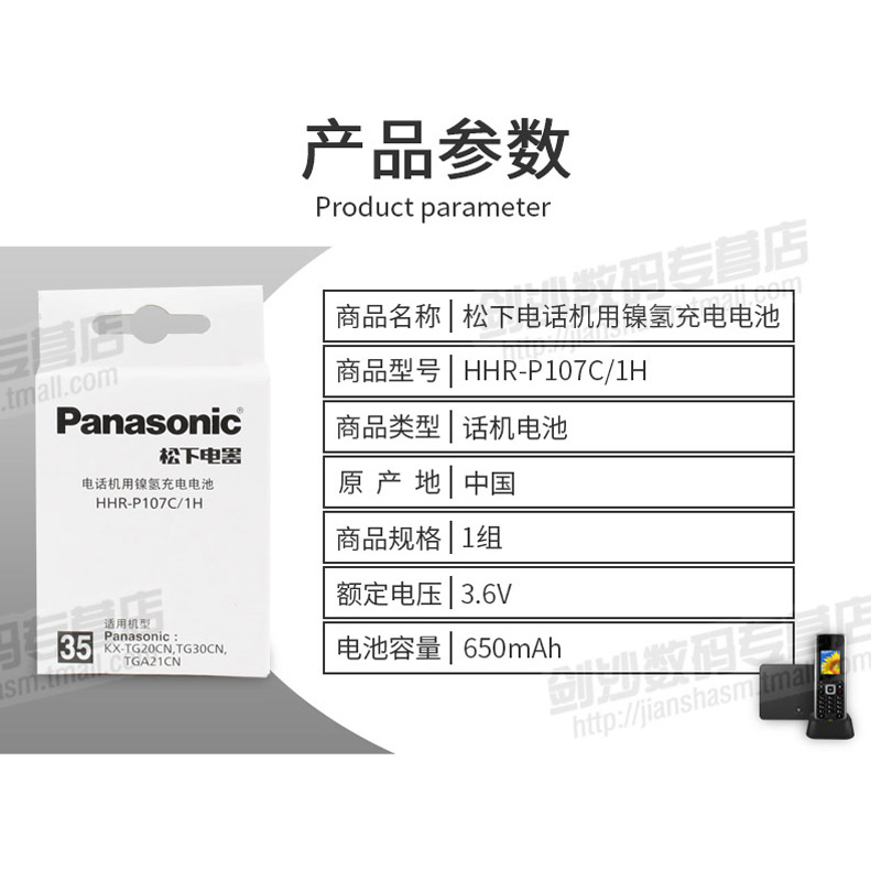 Panasonic HHR-P107 Wireless Phone Battery 3 6V Nickel Hydrogen Rechargeable Battery Pack 650mAh Telephone Charged Original Factory Wholesale Telephone Special Battery