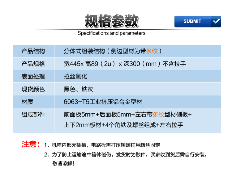 2U-84 holes -300 deep side plate stripe brushed black 2U-84 holes -300 deep side plate stripe brushed iron gray
