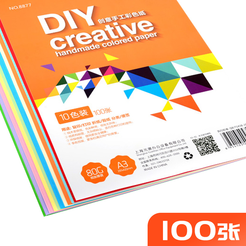 100 A3 color printing paper 80g thick copy paper pink red black white Yellow Blue multi color mixed color packing student children kindergarten diy handmade origami decoration big sheet office paper
