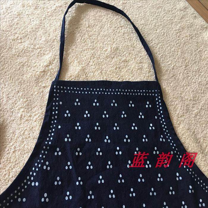 Blue printed cloth hanging neck full-body apron for home kitchen anti-fouling around tea restaurant farmhouse Lok working apron-Taobao