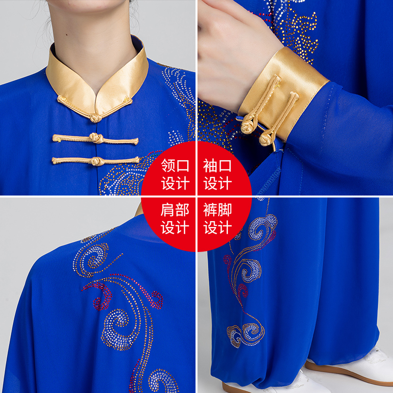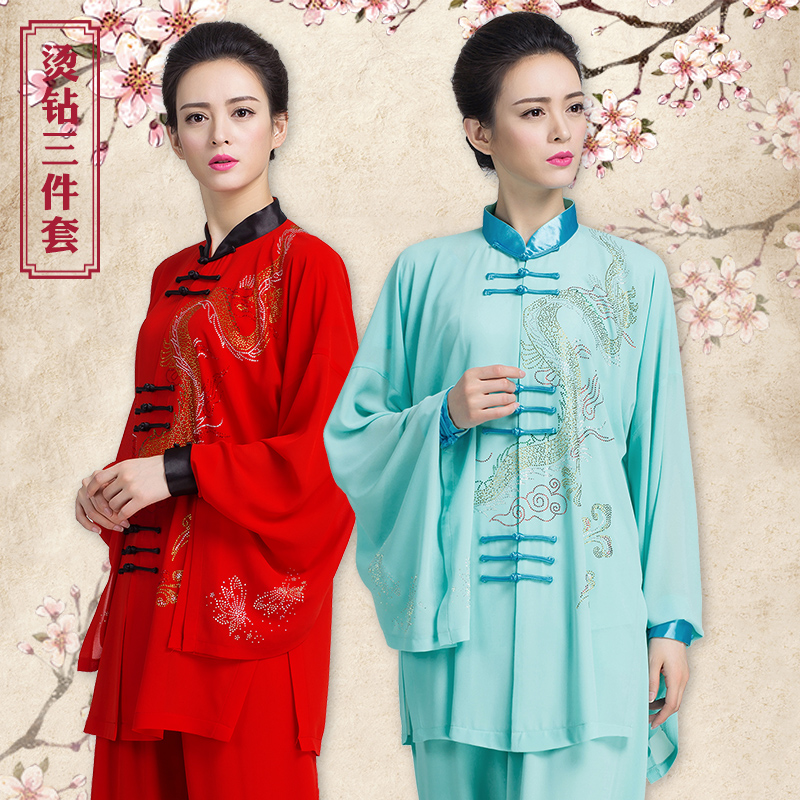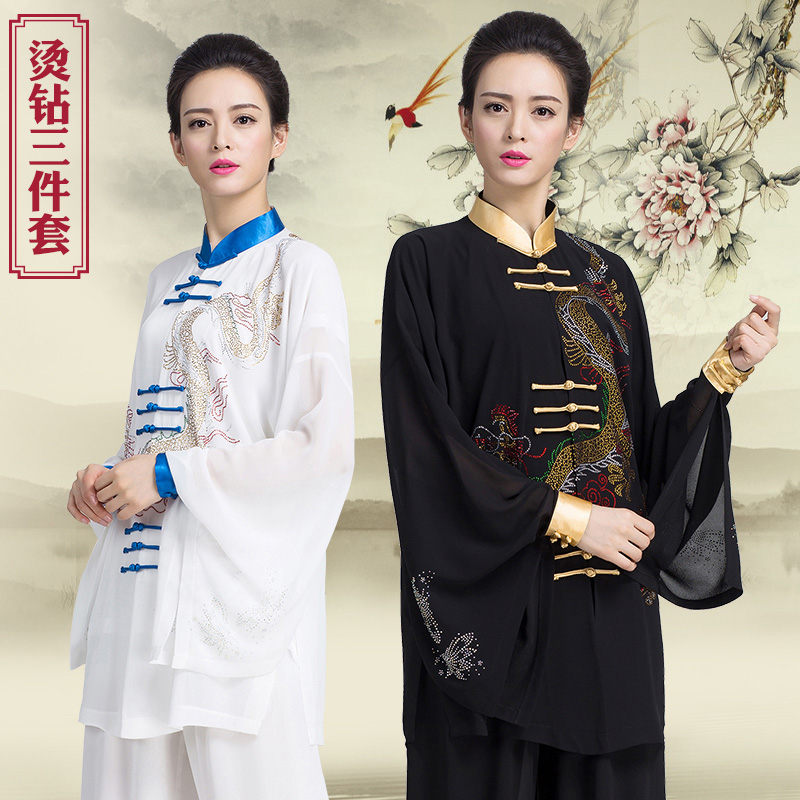 Ancient rhyming Chinese high-end tai chi clothing women's three sets performance suits new flutter taijiquan to practice the female Chinese wind