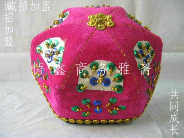 Xinjiang dance hat dance performance headdress Lady Uighur flower hat Ethnic minority stage hat headdress red