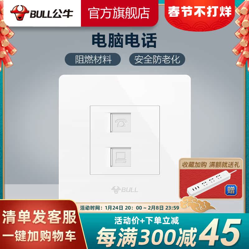 Bull socket flagship switch socket computer phone panel VOIP panel WEB cable phone line G07 white
