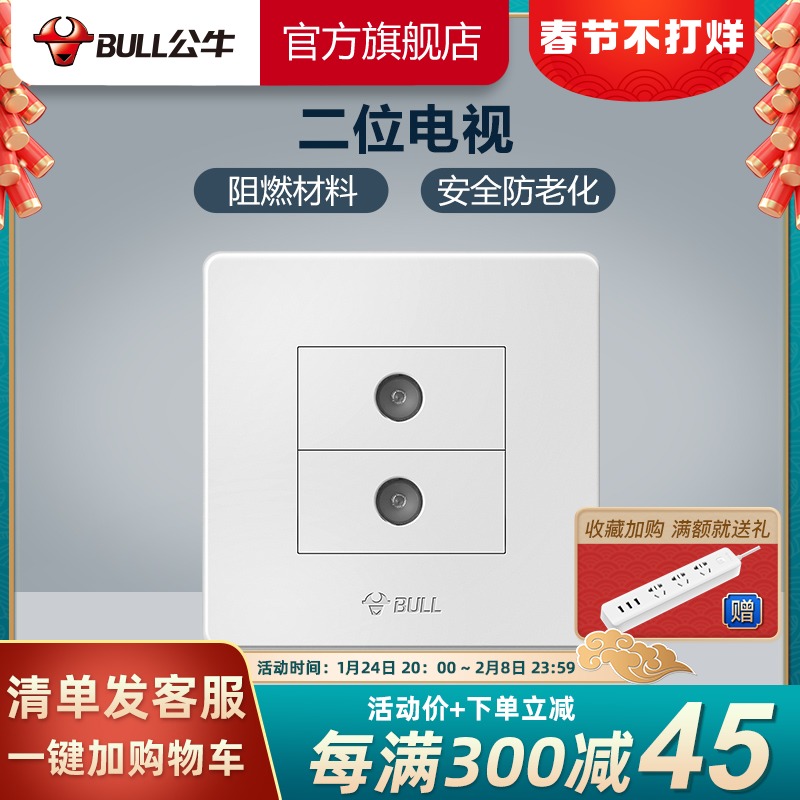 Bull switch socket double TV socket panel cable TV tv power panel closed circuit socket G07 white
