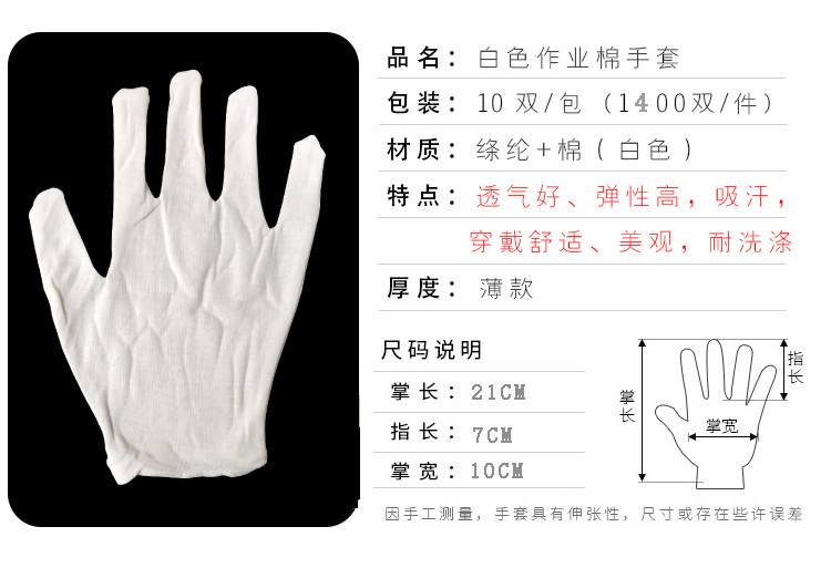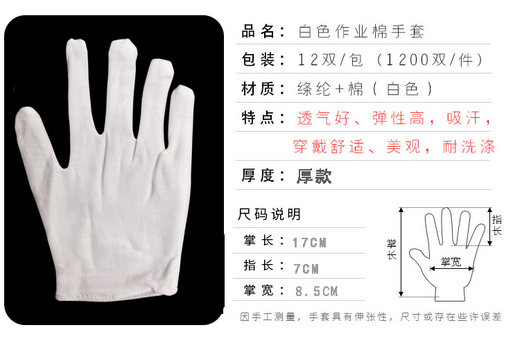 White Gloves Pure Cotton Gift Instrument Work White Lao Royau Play With Thin Cotton Fabric Thickened Homework Sweatcloth Industrial Cotton Gloves