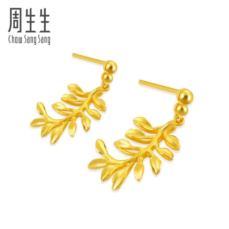 Chow Sang Sang gold earrings foot gold leaf earrings gold earrings earrings female wedding gift 68754E