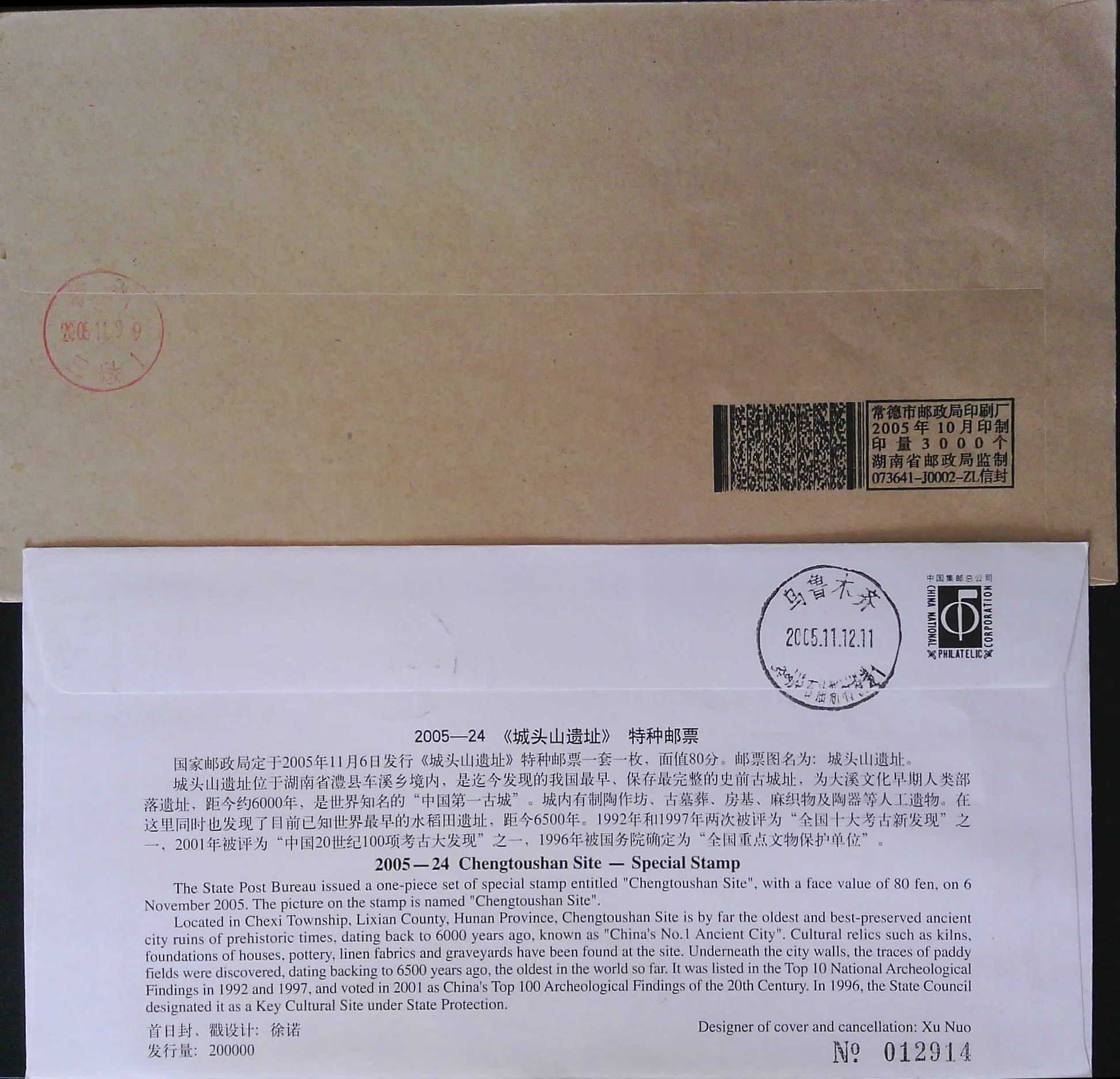 2005-24 Chengtou Mountain Site Hunan Li County Chengtou Mountain In situ Fujian Upper Hangzhou Total seal on the first day of the seal