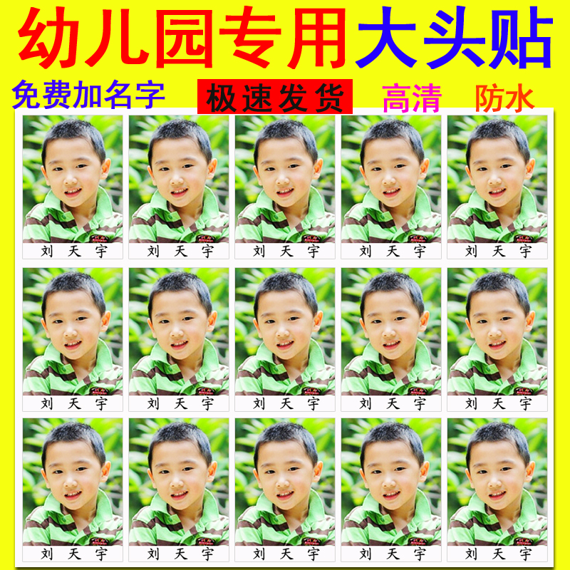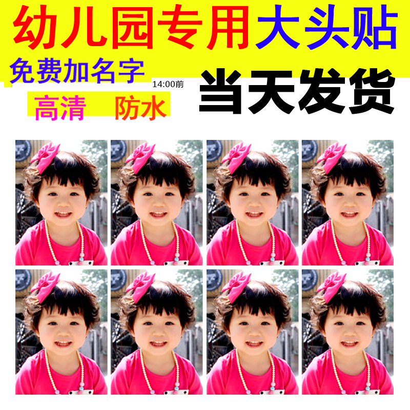 Print kindergarten waterproof big head stickers admission photo 1 inch 2 inch back glue plus name and name sticker ID photo