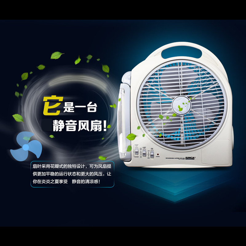 SUNCA Xinjia Lighting Rechargeable Fan Student Desk Fan Power Storage Home 10 Inch Mute Outdoor Portable Desktop