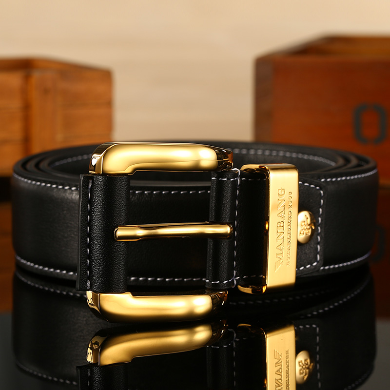Manbang men's leather strap head layer cow leather genuine leather pin buckle copper for casual fashion young middle-aged pants with belt tide