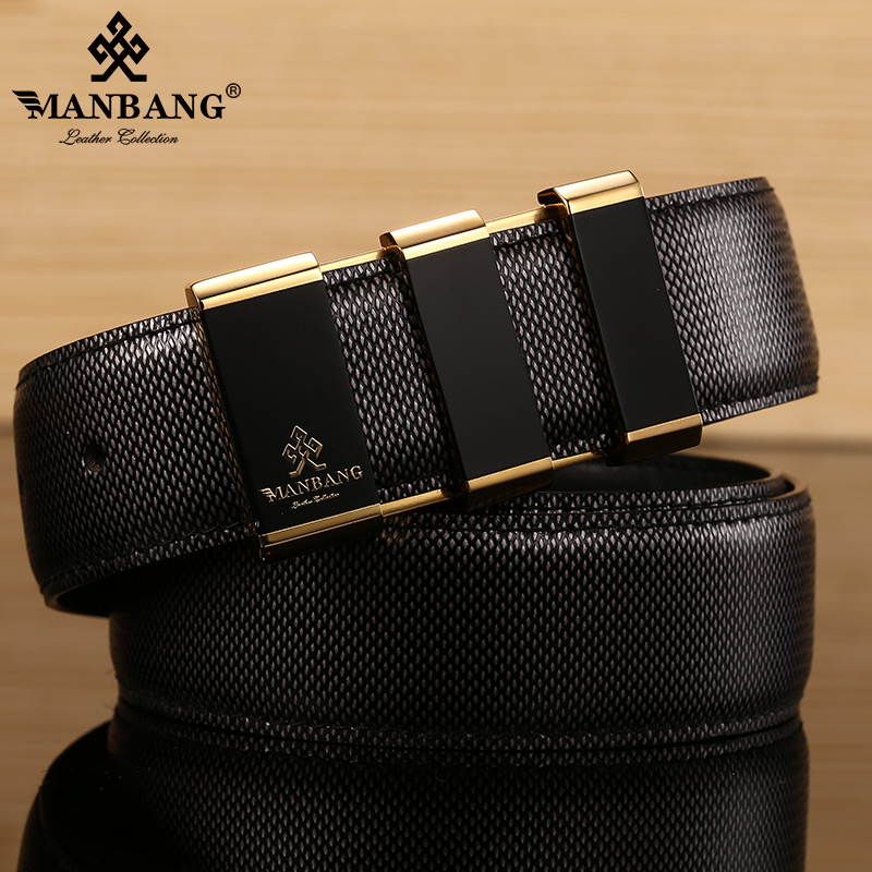 Manbang Belt Men Genuine Leather Copper Smooth Buckle Business Casual Bull Leather Belt Youth Fashion Han Edition Wave Men's Pants Strap