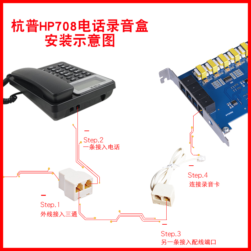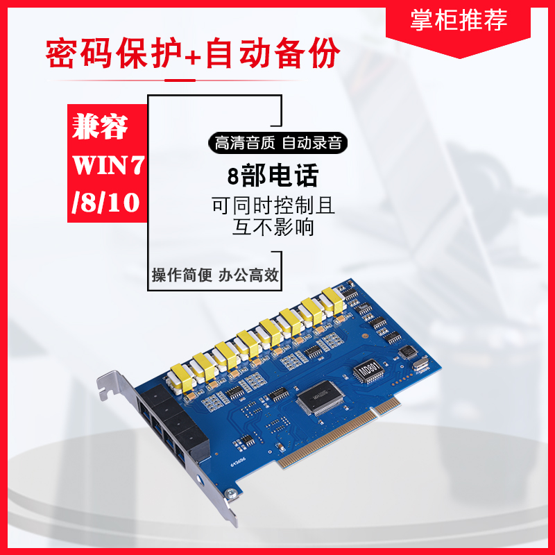 Hangpu HP708 8-way phone recording card recording listening device PCI sound recording system device 8-way cable telephone recording device incoming play-screen real time call inquiry recording card