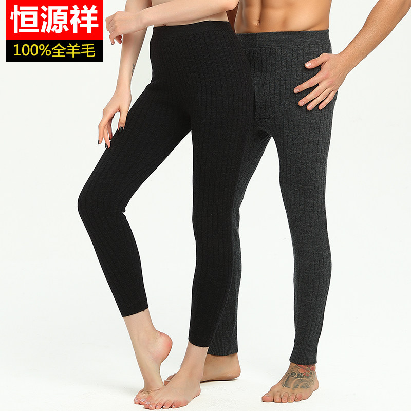 Hengyuanxiang pure wool pants men's high waist thickened slim fit 100% full wool warm pants women's winter inner wool pants