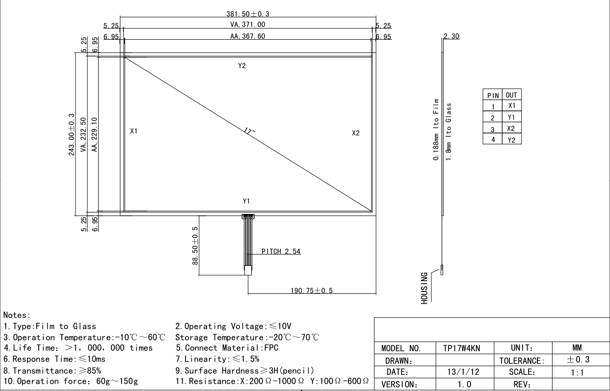 17 inch (16:10) wide screen four-wire resistive touch screen industry manufacturing touch screen