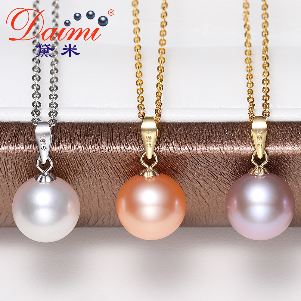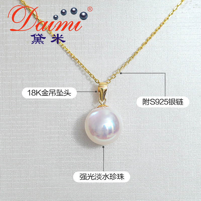 Demi Attachment round white Freshwater Pearl Necklace Single 18K gold Classic pendant gift for mom