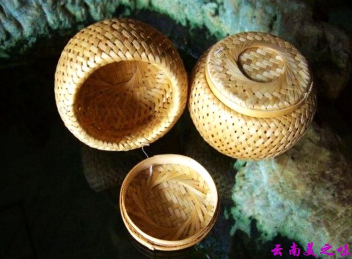 Vietnam's new handmade bamboo weaving double layer No. 5 small bamboo basket placed in the basket refreshment basket Pu'er tea packaging box small tuo