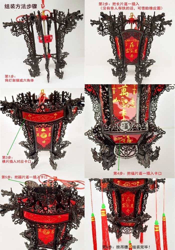 LED Swivel Walking Horse Palace Light Hexagon Plastic Watercrystal Lantern Wedding Celebration Antique Dragon Pinewood Wedding Celebration Grand Red Lantern